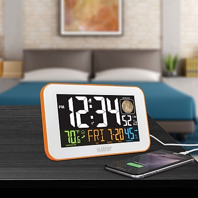 La Crosse Technology 617-1485O Color LED Alarm Clock with USB charging port, Orange