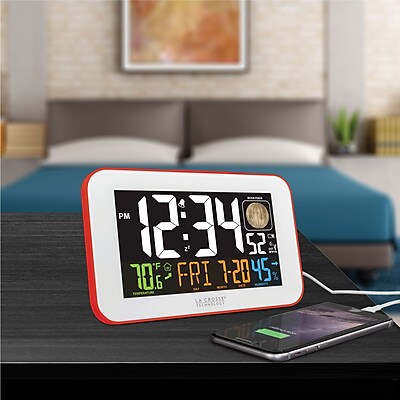 La Crosse Technology 617-1485R Color LED Alarm Clock with USB charging port, Red