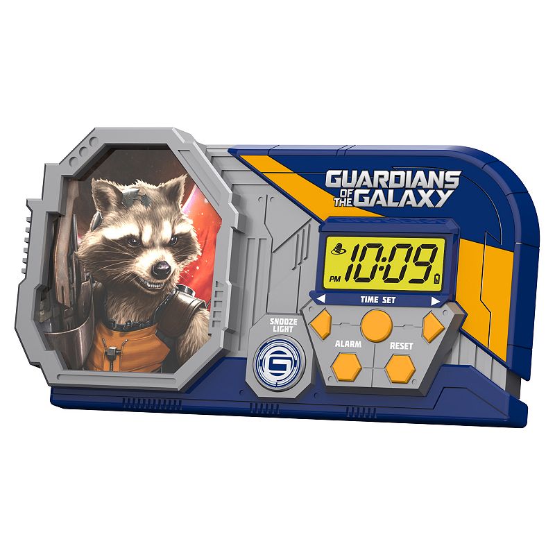 Your little one can wake up each morning with this alarm clock that features a built-in night light and Rocket Raccoon graphics Kid-friendly design Easy-to-read, backlit display Built-in sleep timer night light Ages 3 years &
