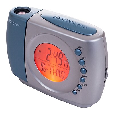 Alarm clock with FM radio that displays time in 12 and 24 hour format Back-lit display ensures clear visibility, even in the dark Includes a projection focus dial to adjust sharpness of projected image