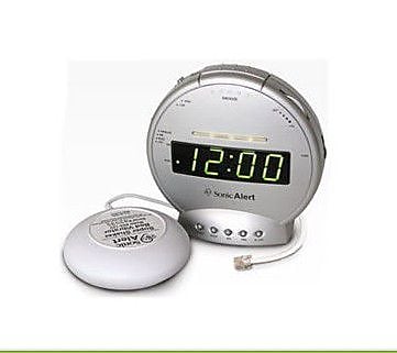 Power Source - 9v Battery Sonic Alert Sonic Boom alarm clock with shaker and telephone signaler Adjustable volume and tone
