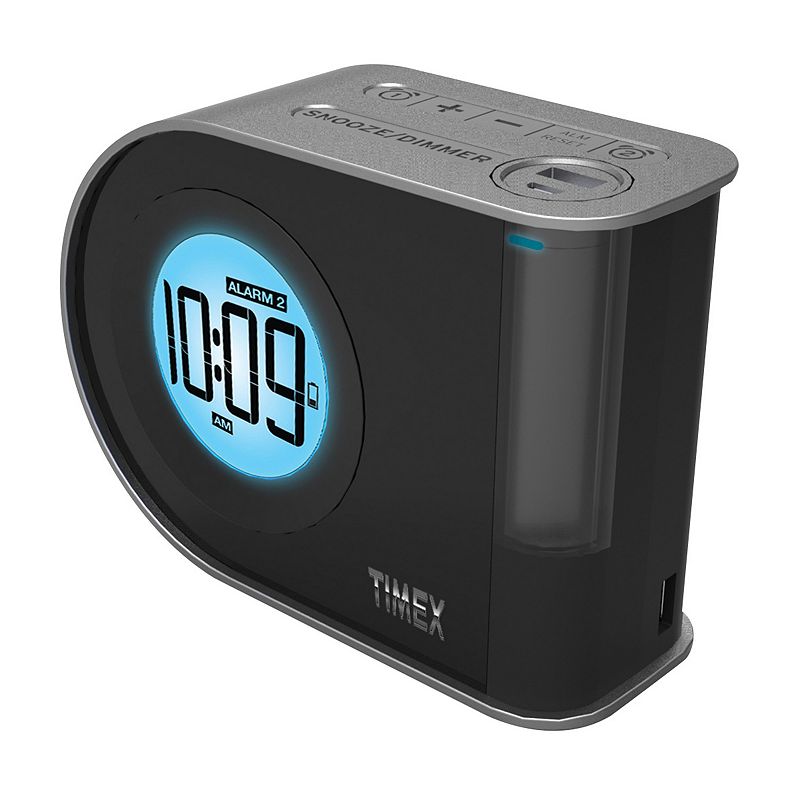 Enjoy the capabilities of this Timex Dual Alarm Clock and removable rechargeable battery pack